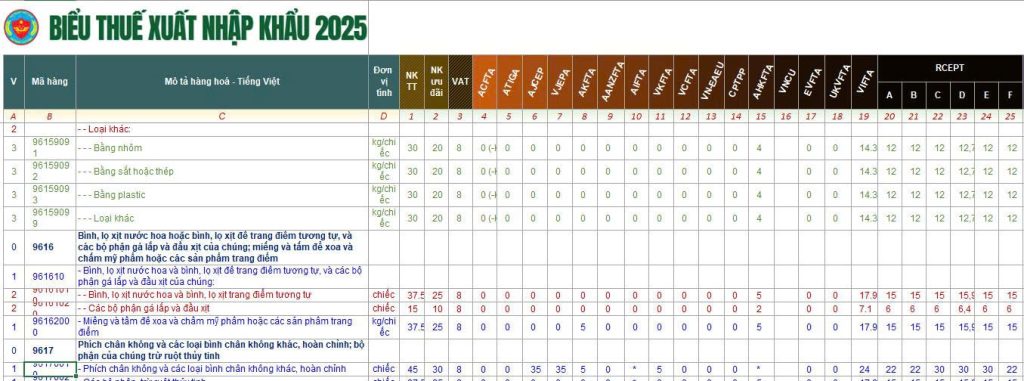 - Thuế nhập khẩu ưu đãi đặc biệt (có C/O hợp lệ): 0%